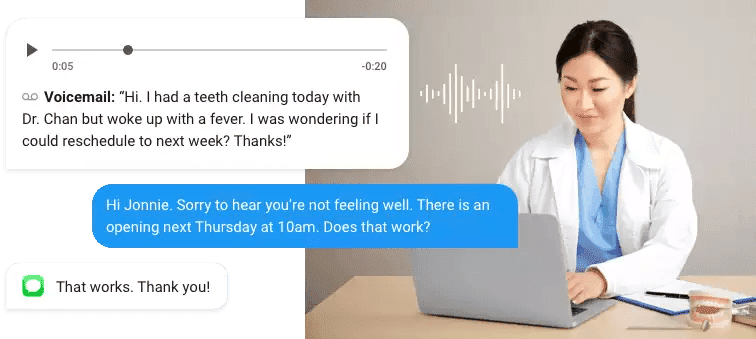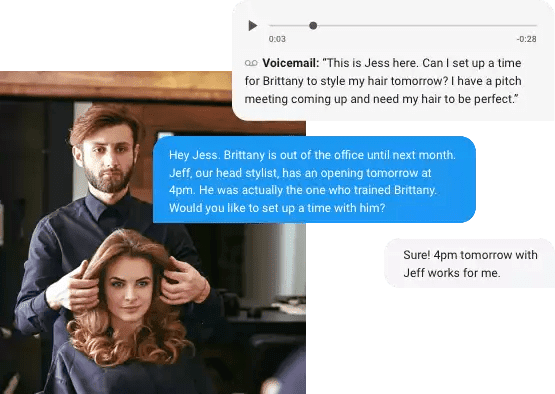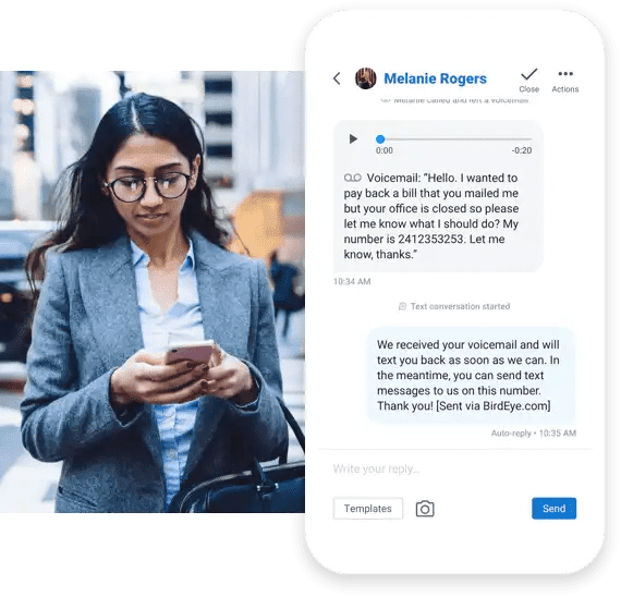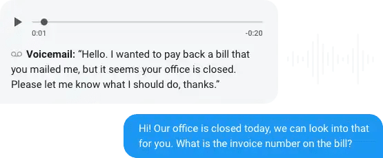 Read the voicemail transcript or listen to the audio, then continue the conversation through text.