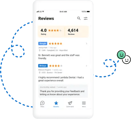 Show potential patients social proof on sites like Google, Facebook, and Healthgrades. Automatically Send review requests to patients via text and email after an appointment and see your reviews grow.
